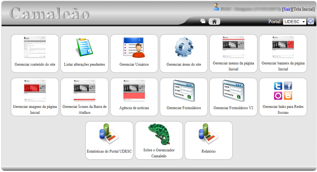 Para entrar no sistema Camaleão, acessar a url: http://www.udesc.br/gerenciador/