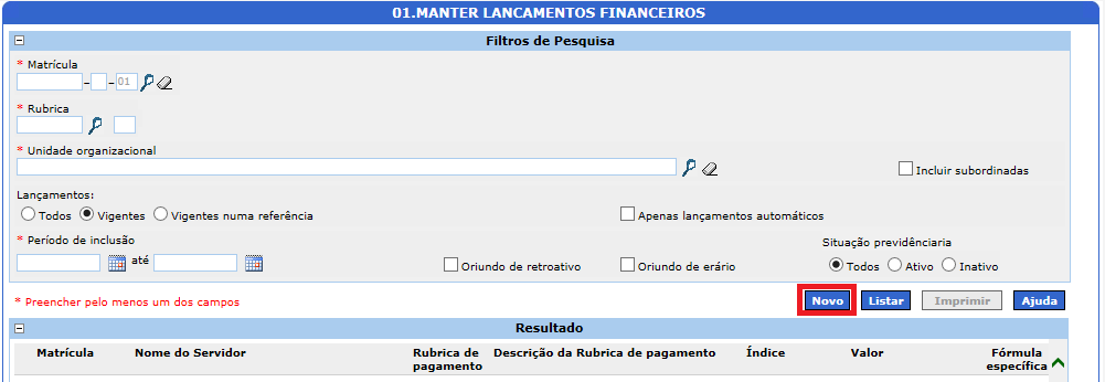 1. Vá em MENU DO SISTEMA > PAGAMENTOS > LANCAMENTO FINANCEIRO > MANTER LANCAMENTOS FINANCEIROS