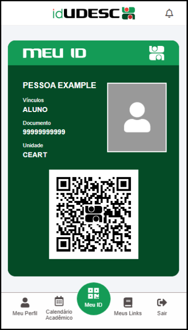 Meu ID é a carteirinha digital que contém o QR Code único do usuário que possui cadastro no ID Udesc. Esse QR Code é usado apenas e exclusivamente em sistemas desenvolvidos pela Udesc, com o intuito de facilitar a identificação do usuário e permitindo o acesso a alguns serviços.