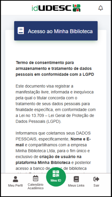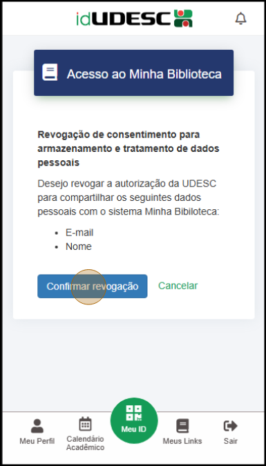 Lembrando que, revogando o Termo de consentimento seus dados não serão mais compartilhados, mas você também não terá mais acesso ao Minha Biblioteca.