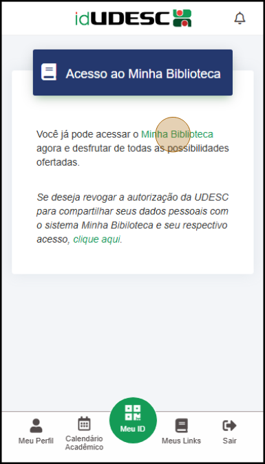 Depois de concordar com o Termo, aparecerá o link para acesso ao Minha Biblioteca, que também poderá ser acessado diretamente pelo link favorito.